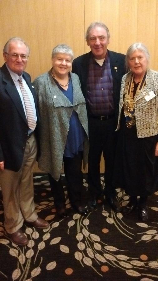Denise awarded three Paul Harris Sapphires for outstanding service to Rotary Fitzroy. Beverley McFarlane, John Pruscino and Peter Hille.