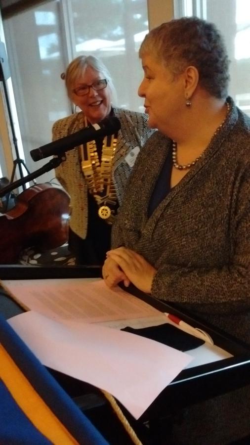 Changeover lunch was held at the Greenacres Golf Club. Thanking Denise Charman and welcoming Joy Millen.