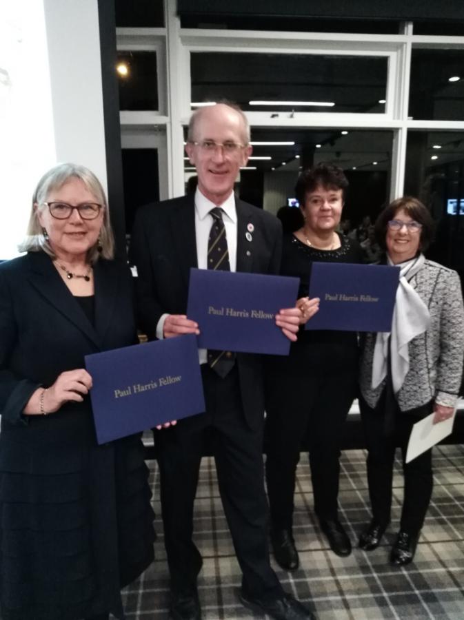 50th Anniversary of our Club. Changeover Dinner at the LaTrobe Golf Club. Thanks to Past President Joy Millen and welcoming incoming President Steve Earl. Great night, good food, good company, nice music and three Paul Harris Fellows.