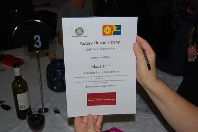Held at the Fitzroy Victoria Bowling & Sports Club on Monday, May 18. Scholarships were presented to Fitzroy Football Club U129s :